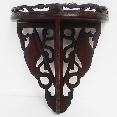 Vintage Pierced Carved Rosewood Shelf Flags & Scrolls