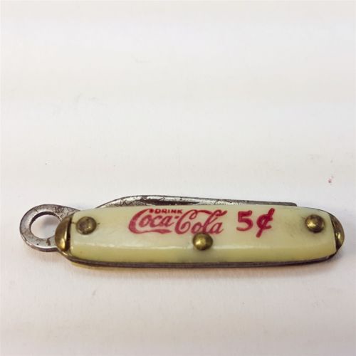Title (ebay affiliate link): Coca-Cola Miniature Pocket Knife 7/8" Blade 5 Cents Drink White Red USA Vintage