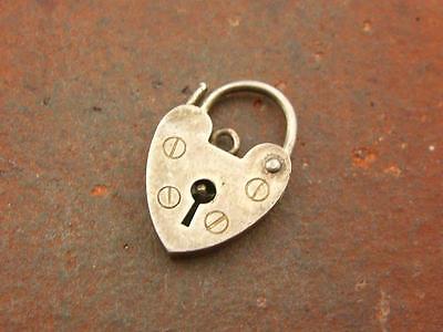 Vintage Small Stamped Padlock Silver Heart Slide Pendant (1.7g)