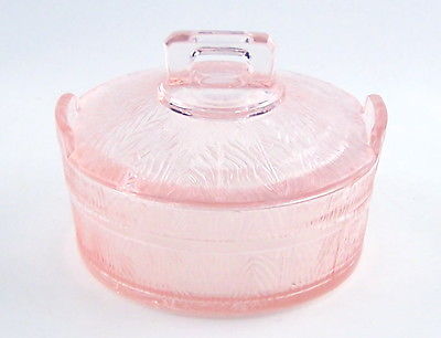 Title (ebay affiliate link): FINE VINTAGE PINK DEPRESSION GLASS COVERED CANDY DISH - CAMBRIDGE "BARREL" DISH