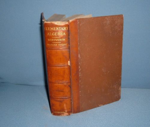 Title (ebay affiliate link): ANTIQUE SCHOOL ARITHMETIC ELEMENTARY ALGEBRA TEACHER EDITION BOOK WENTWORTH 1906