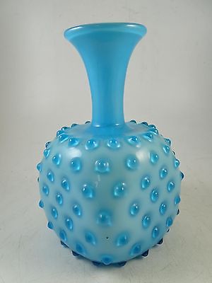 Antique Baby Blue Hobnail Opalescent Table Vase Glass Rough Pontil Vintage Old