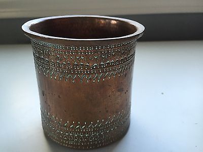 Vintage Hand Hammered copper 3.5 inch ornate design cup