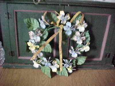 PETITES CHOSES 12" METAL WREATH WITH PASTEL FLOWERS AND LARGE BOW