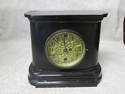 Antique Ansonia Black Cast Iron Mantel,Mantle Clock-AS IS for Parts,Repair-HEAVY