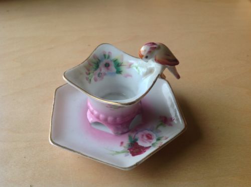 Title (ebay affiliate link): Vintage Japan Miniature Footed Cup and Saucer with Parrot Bird Handle
