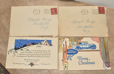 2 Ford Automobile Christmas Advertising Trade Cards 1920's Opdykes Garage NJ