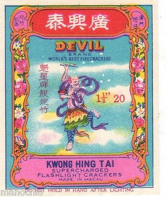 Title (ebay affiliate link): Vintage Chinese Kwong Hing Tai Devil Brand Firecracker Fireworks Label Class 2