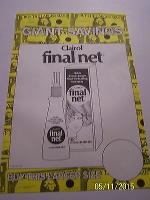 Vintage Paper Store Sign Giant Savings Clairol Final Net Hair Spray
