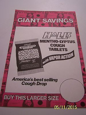 Vintage Paper Store Sign Giant Savings Halls Mentho-Lyptus Cough Tablets