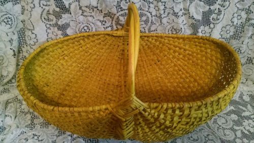 Title (ebay affiliate link): Vintage Old Large Yellow Wicker Gathering Buttock Basket EUC Country Primitive