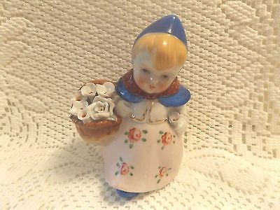 Vintage Ceramic Porcelain Dutch Girl w/Flower Basket Figurine Occupied Japan