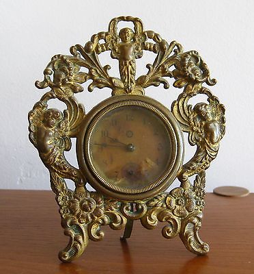 Antique New Haven French Cast Bronze Cherub Putti Table Shelf Clock