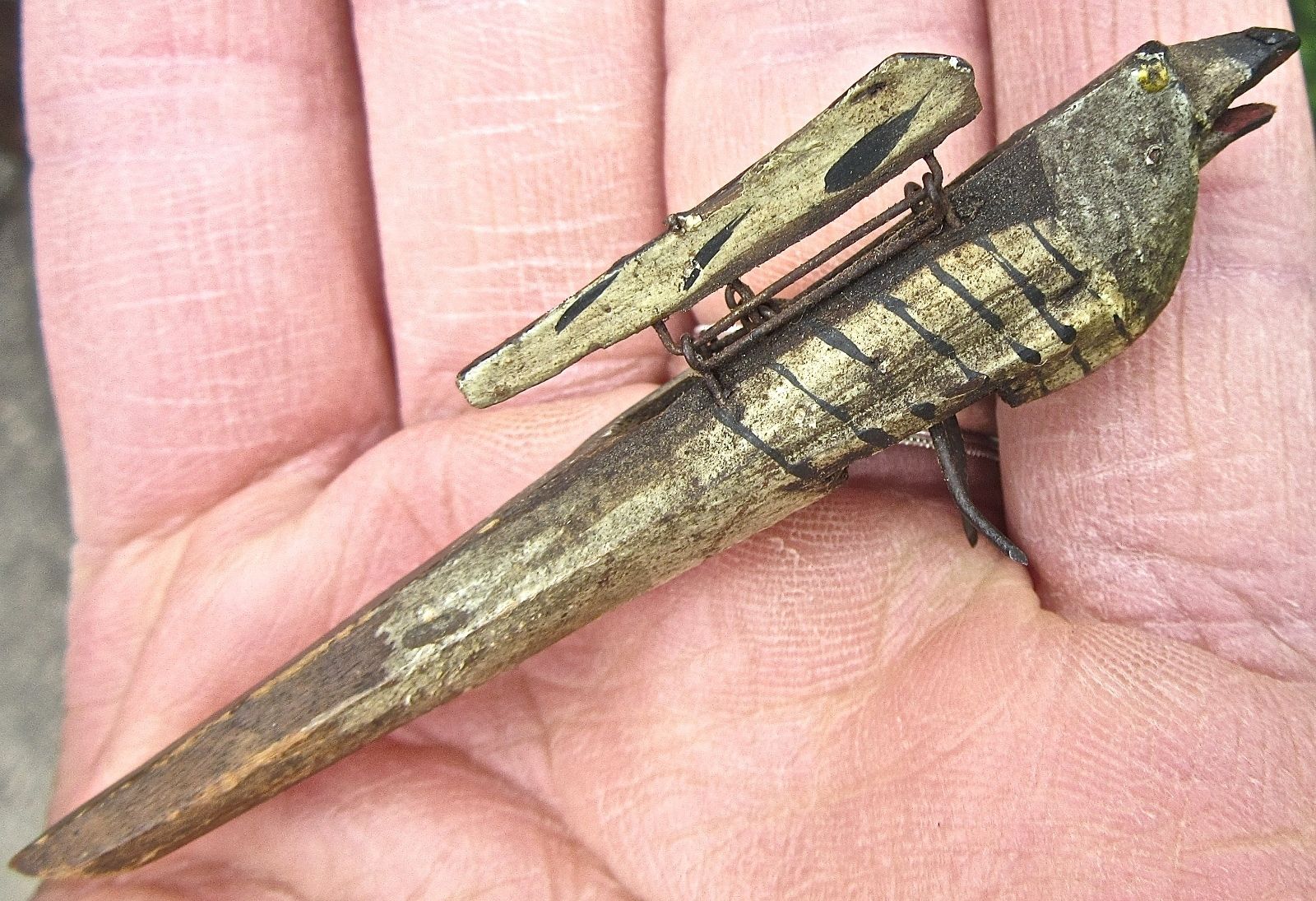 Title (ebay affiliate link): * BIRD PART antique COO-COO CLOCK coocoo FOLK ART painted ARTICULATING wood WIRE