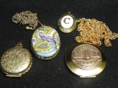Lot Of 4 Antique Lockets NR Jewelery Necklaces