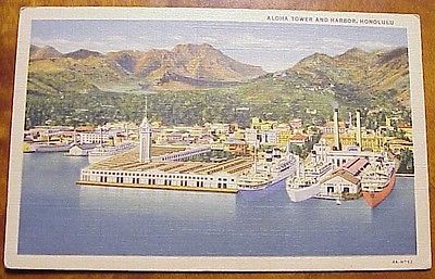 Title (ebay affiliate link): 1942 Aloha Tower Honolulu Harbor TH Hawaii Curteich Linen Army Censor