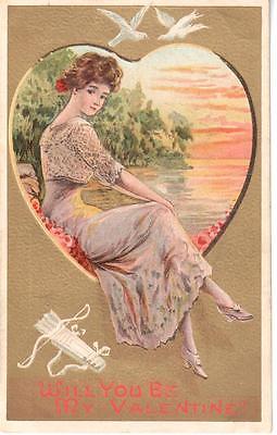 LOT: 6 VINTAGE VALENTINE POSTCARDS BEAUTIFUL LADIES GENTS CUPID HEARTS