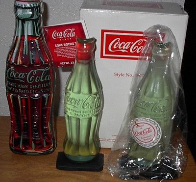 Title (ebay affiliate link): Coca Cola Bottle Bookends 7 1/2" tall green Plus Coke Bottle Tin w tag