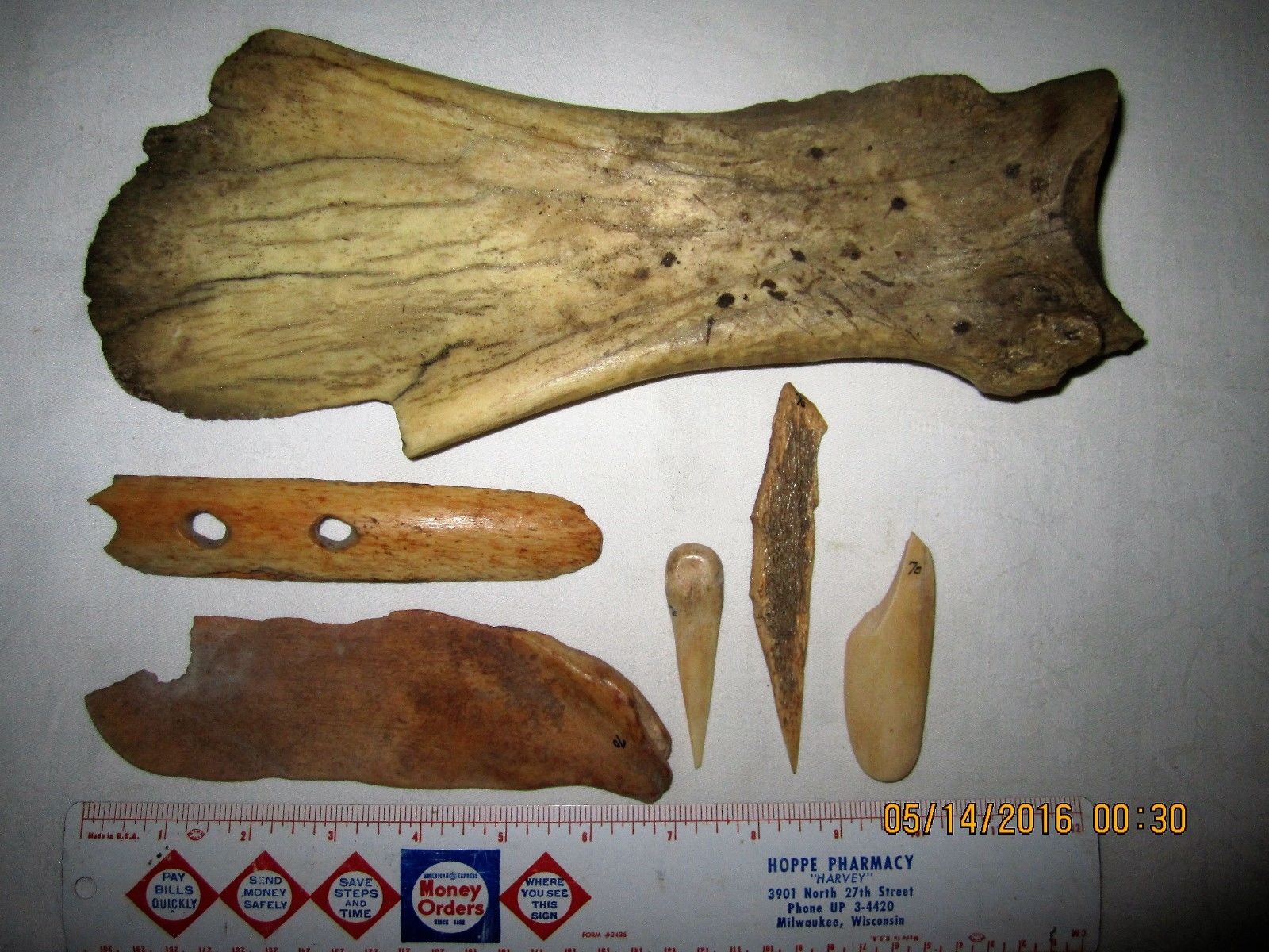LOT OF 6 NATIVE PLAINS BONE ARTIFACTS ( STANLEY COUNTY, SOUTH DAKOTA )