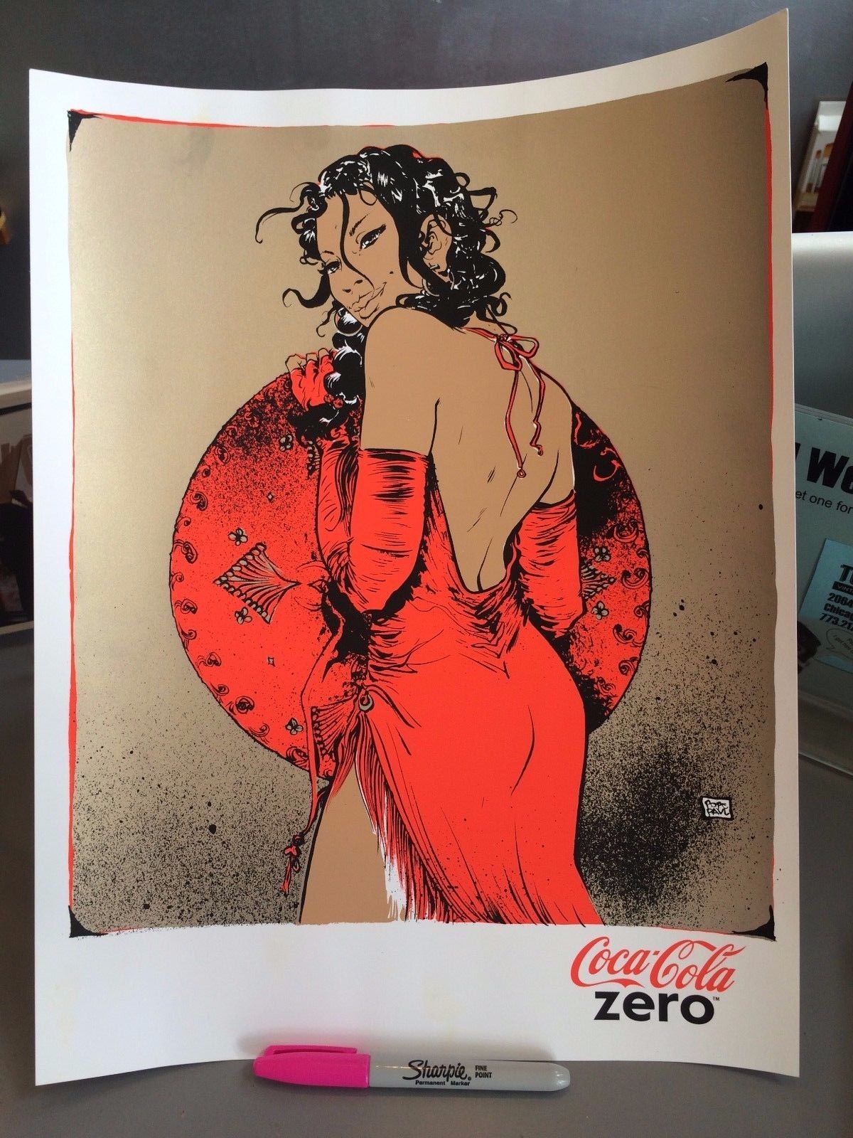 VERY RARE PAUL POPE PRINT COCA COLA ZERO SDCC SCREEN PRINT 3 COLOR 13x17 GOLD