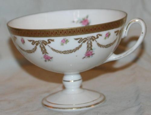 Title (ebay affiliate link): Vintage Footed Tea Cup Transferware Porcelain Delicate Flowers Roses Art Nouveau
