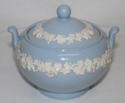 ANTIQUE WEDGWOOD Sugar Bowl QUEENS WARE Blue & White