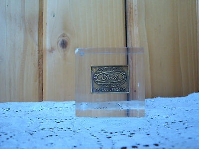 Title (ebay affiliate link): Vintage FORD 75th Anniversary Paperweight Clear Lucite Dealer Desk Accessory