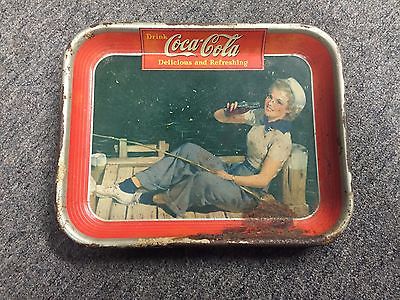Vintage 1940 COCA COLA Serving Tray SAILOR Girl Fishing ON DOCK W/ COKE ANTIQUE