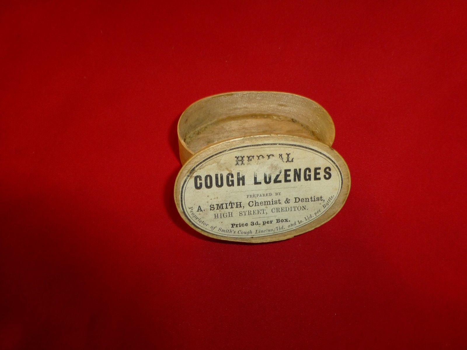 Title (ebay affiliate link): RARE 1800'S WOODEN 3" MEDICAL " COUGH LOZENGES BY SMITH " BOX WITH LABEL