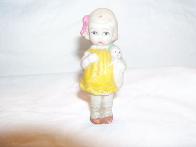 ANTIQUE LITTLE GIRL BISQUE DOLL HOLDING DOLL MI JAPAN