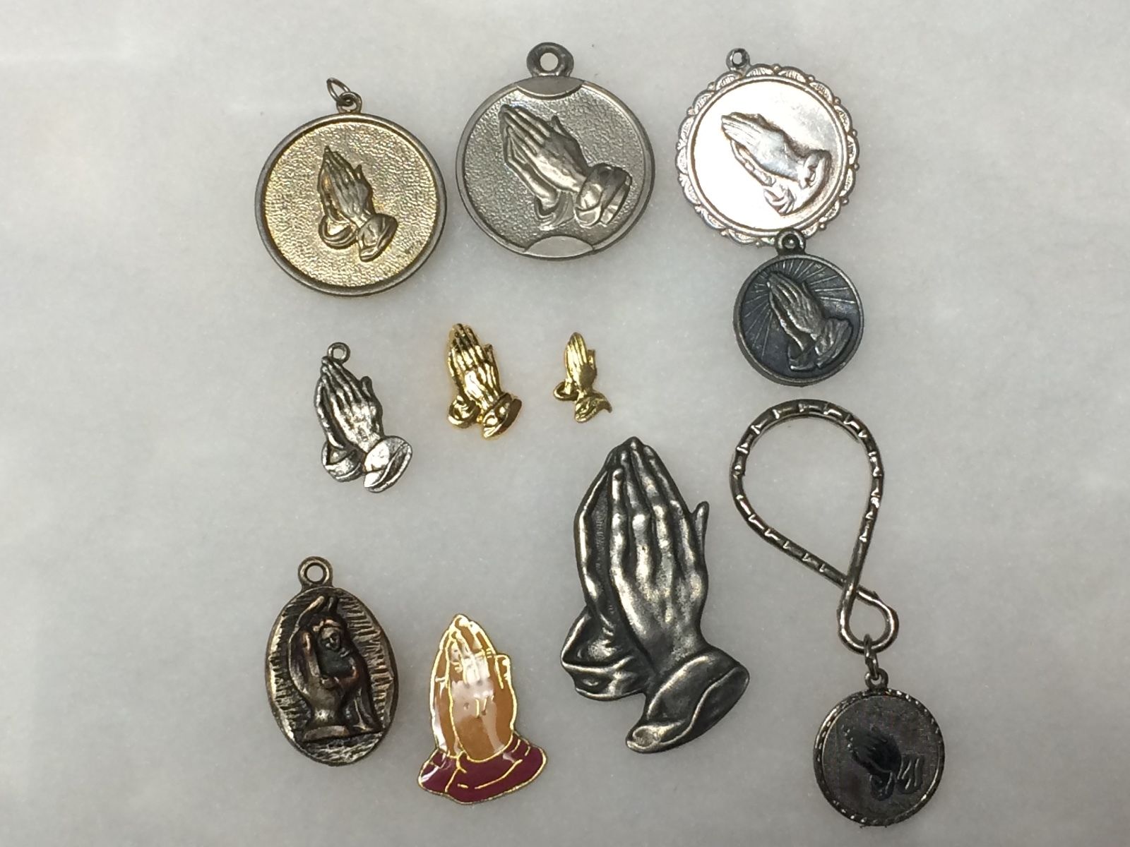 Lot of 11 Vintage Praying Hands Pendants Medals Key Chain - .99 Cent Start!