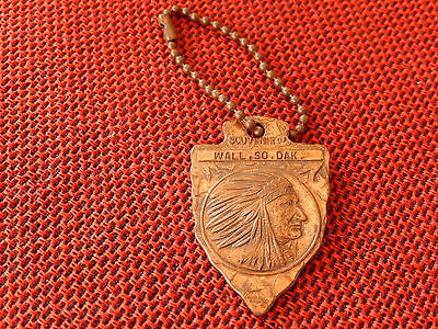 VINTAGE KEYCHAIN FOB/ARROWHEAD & INDIAN HEAD FOB/WALL,SO.DAK./COPPER?/REAL NEAT!