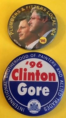 Title (ebay affiliate link): Painters, Allied Trades, Plumber, Fitters Locals for Clinton/Gore '96 Pins