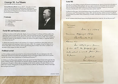 PRESIDENT WILSON DEMOCRAT PHILANTHROPIST BOUND BROOK NJ LA MONTE LETTER SIGNED !