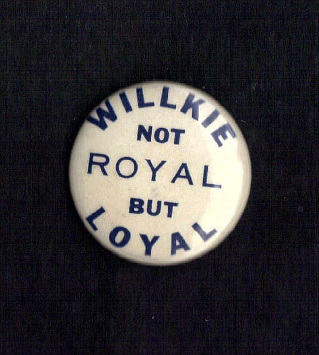 Title (ebay affiliate link): 1940 Wendel Willkie 1-1/4" / "Loyal - Not Royal" Campaign Button