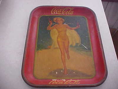 1937 Coca-Cola tray Girl in swim suit running on the beach Conshocton Good !!