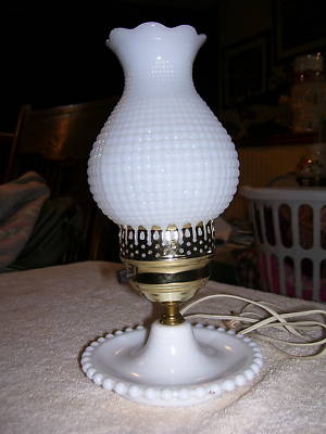 Vintage Hobnail Milk Glass Hurricane Lamp