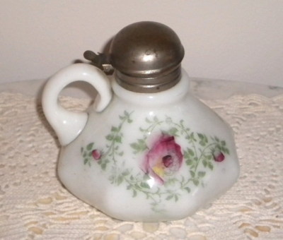 VICTORIAN EAPG MILK GLASS ROSE PAINTED SYRUP PITCHER