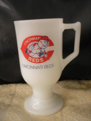 Vintage Cincinnati Reds White MILKGLASS Mug Cup Nice!