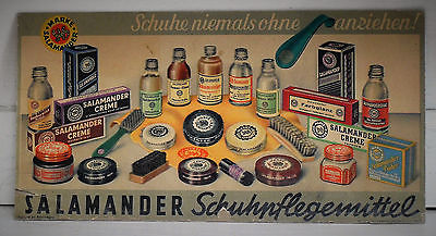 Original Vintage German Cardboard Sign SALAMANDER Shoe Polish 1950s