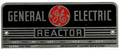VINTAGE GENERAL ELECTRIC REACTOR nameplate circa. 1940`s Only 1 on Ebay!
