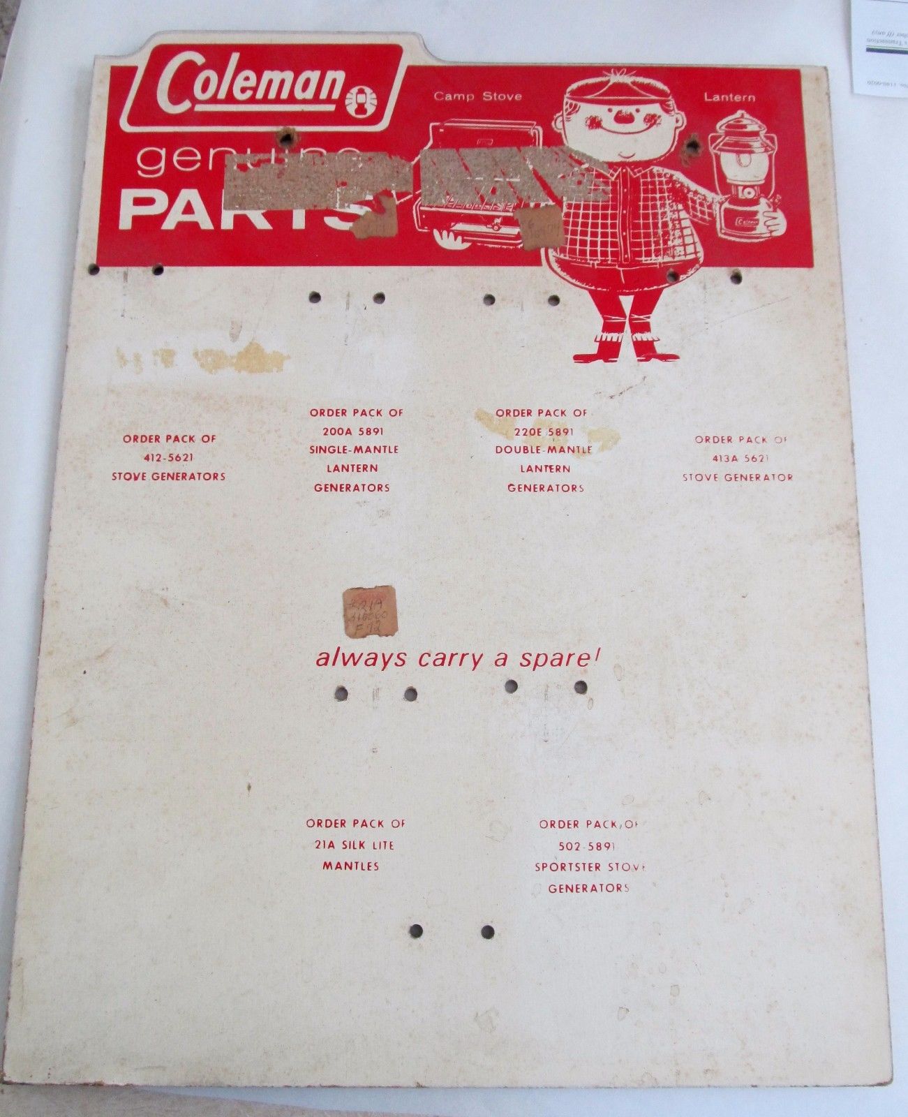 Title (ebay affiliate link): Vintage Coleman Parts Board Store Display Campstove & Lantern