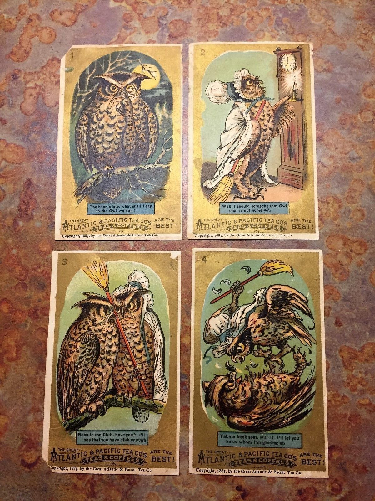 Title (ebay affiliate link): VTG VICTORIAN TRADE CARD AD GREAT ATLANTIC & PACIFIC TEA CO. LATE 1883 4 HUMOR