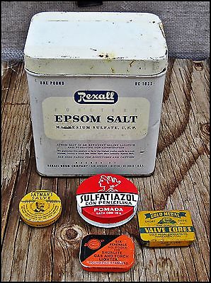Title (ebay affiliate link): Lot 5 VTG Mostly Mini ADVERTISING TINS Rexall Sayman's Shurlite Gold Medal Valve