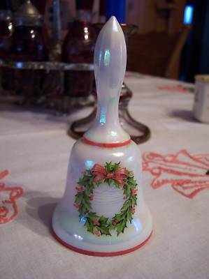 Holiday Christmas Bell Mother of Pearl Milk Glass