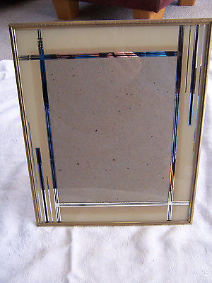 ANTIQUE ART DECO PICTURE FRAME 12x10" GOLD BLACK MIRROR 1950s GLASS stripe decor