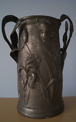 WWI French Trench Art ? Iris Art Nouveau Metal Vase with Handles