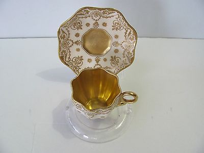 ANTIQUE COALPORT MINIATURE CUP&SAUCER W.HEAVY GOLD OVER LAY and RAISED GOLD