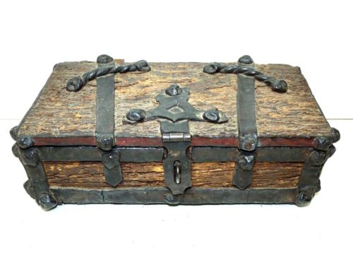 Title (ebay affiliate link): Antique Medieval Style Wormwood & Wrought Iron Rustic Hand Made 14" Chest Box