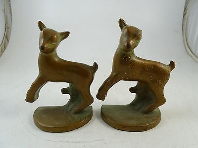 Antique Cast Iron Deer Doe Fawn Art Deco Faux Bronze Bookends Set Vintage Old